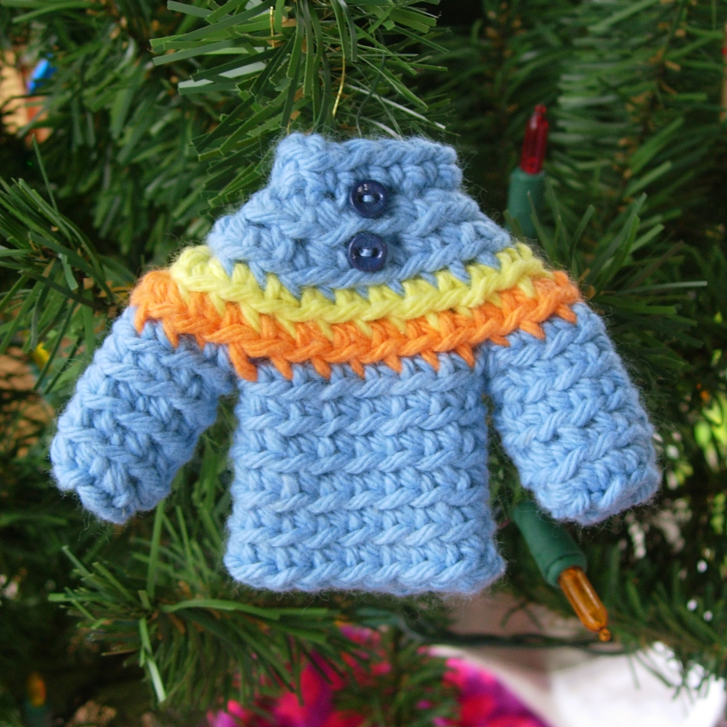 DSCN6962 Published December 6, 2013 at 1499 × 1499 in Tiny Sweater Ornaments with itty bitty buttons.