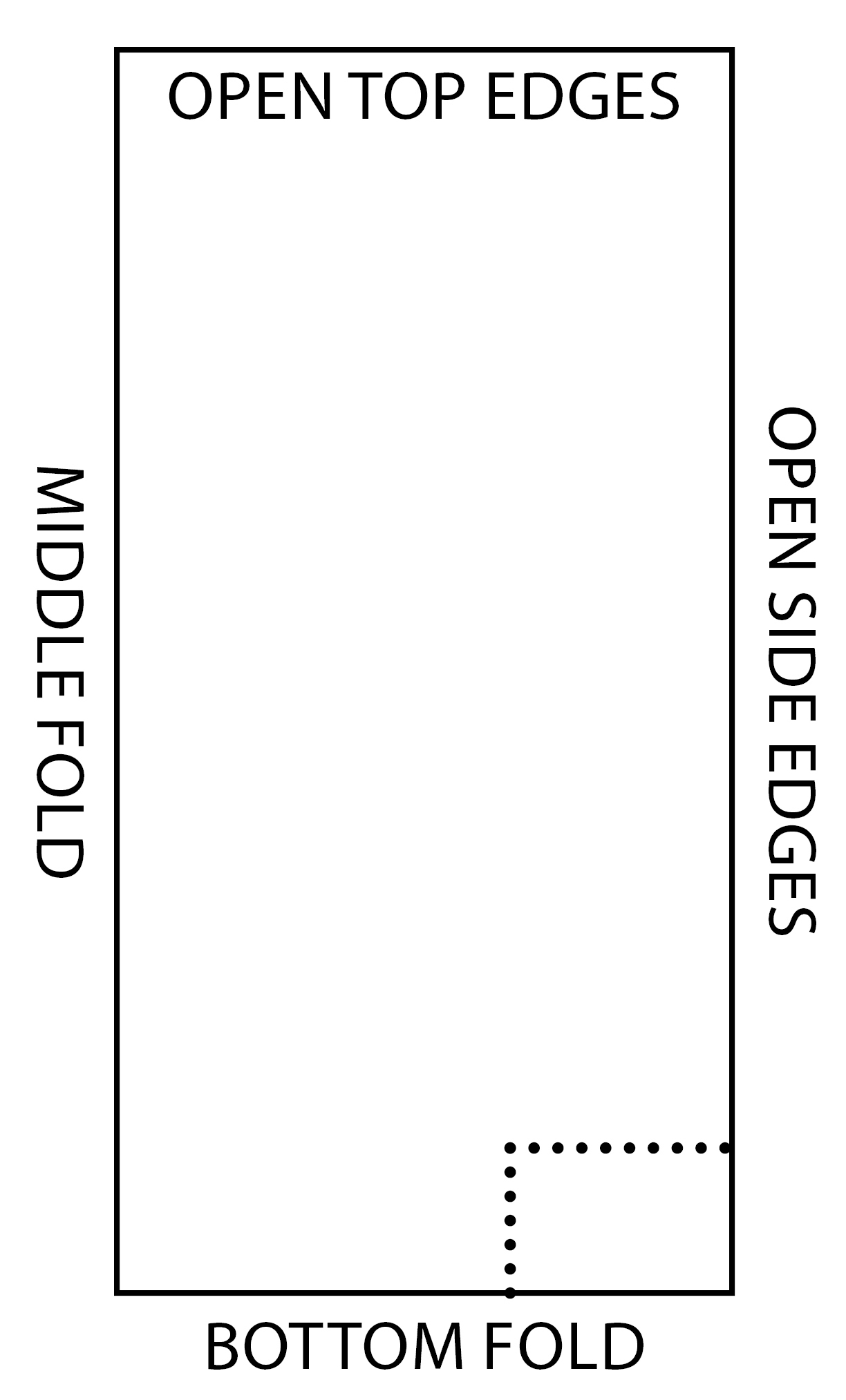 - Following the diagram above, measure 2.5″ up from the bottom fold and 3.25″ in from the outside edges and cut out that rectangle through all 4 layers.