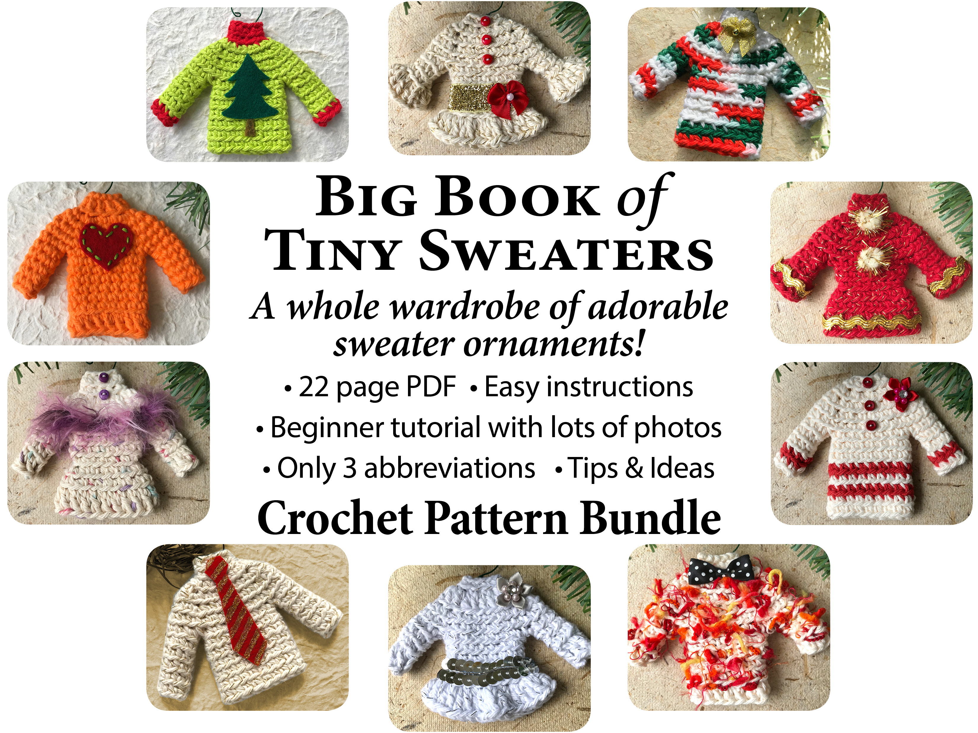 I’m really excited to bring you this pattern bundle. I call it the Big Book of Tiny Sweaters for a reason, it’s got a lot to offer. Visit my Etsy shop to purchase. Thank you!!